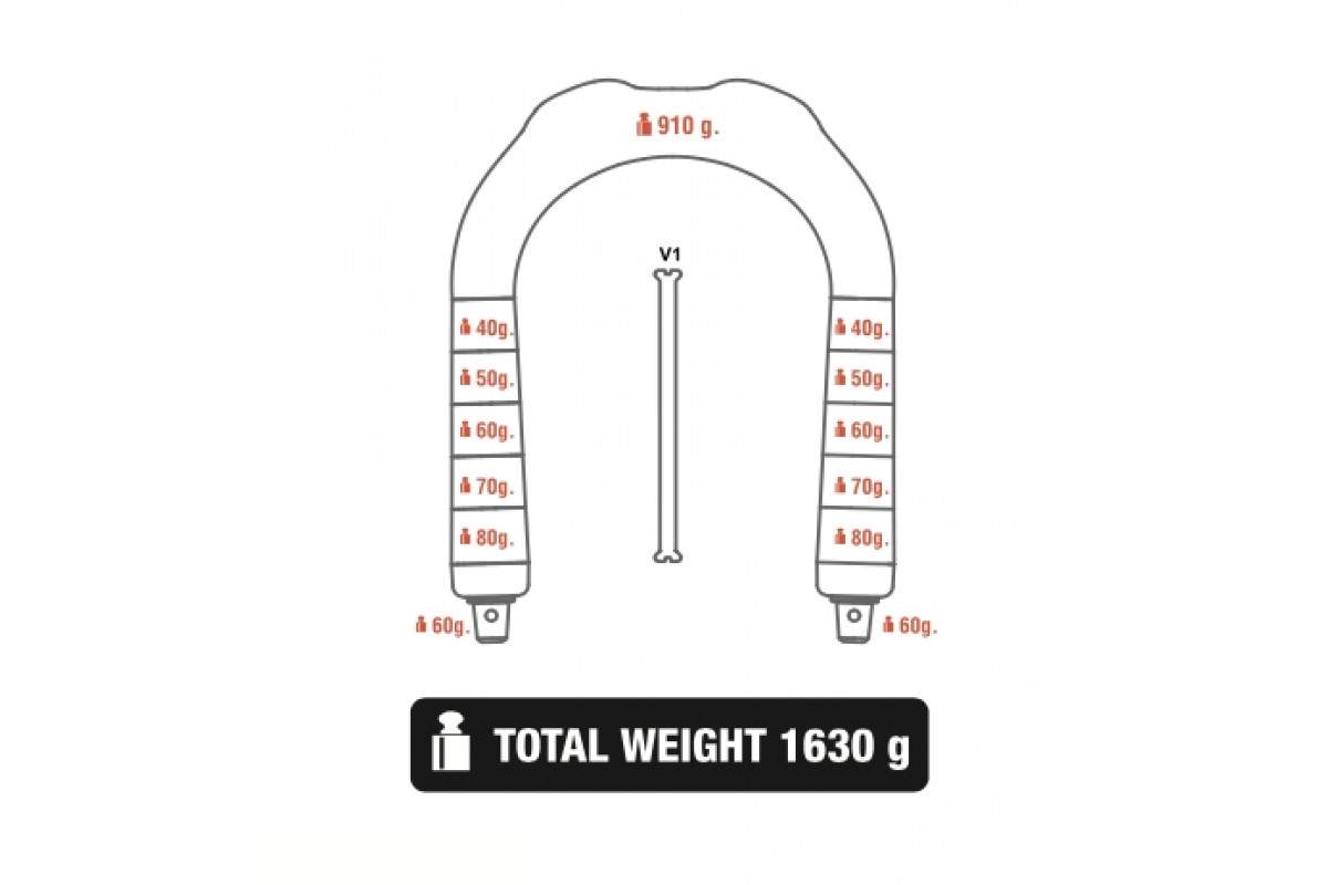 — грузовая система 4 кг: базовый ошейник весом 1600 грамм + пять задних сегментов (210, 280, 380, 500, 1000 грамм).