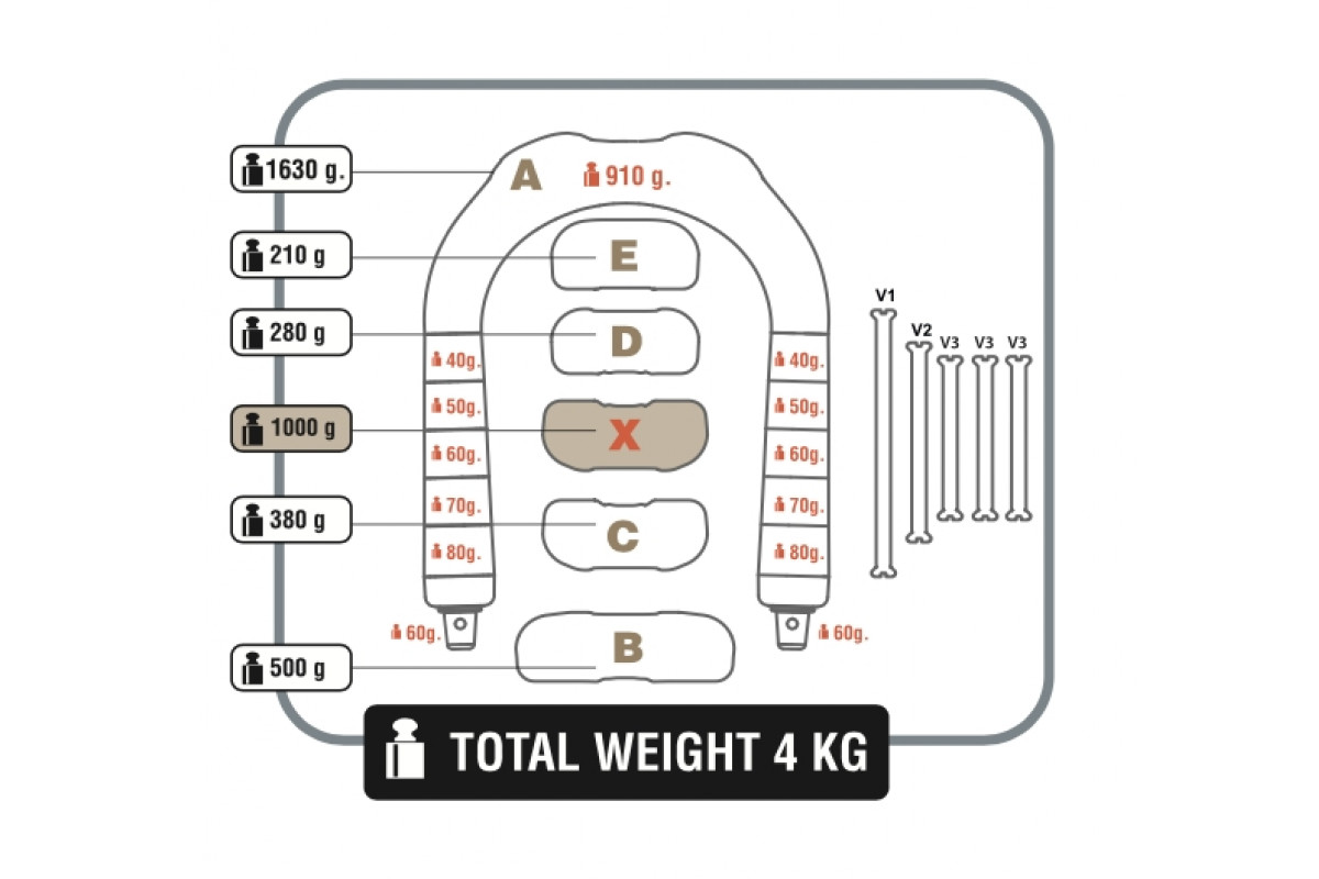 Грузовая система для фридайвинга C4 D&D (Deep and Dynamic) представляет собой уникальную инновацию в мире фридайвинга, разработанную для удовлетворения потребностей как глубоководных погружений, так и динамических дисциплин апноэ. Само название отражает его ключевую особенность: шейная грузовая система (ошейник) разработана таким образом, чтобы обеспечивать отличные эксплуатационные характеристики в обеих дисциплинах, устраняя необходимость приобретения двух отдельных изделий. Ключевые функции шейной грузовой системы: 1. Конструкция с учетом глубины — ошейник изготовлен из свинца, покрытого удобной оболочкой из термопластичной резины, это износостойкое и эластичное покрытие, оно не боится отрицательных температур и механических воздействий. Так же это покрытие предотвращает порчу гидрокостюма, исключает загрязнение снаряжения свинцовой пылью и просто приятен на ощупь. Базовый ошейник весит 1600 грамм, основная его деталь весит 910 граммов, так же с помощью 5 сменных свинцовых грузиков с каждой стороны: 40, 50, 60, 70 и 80 граммов можно регулировать общий вес базового ошейника. Эти свинцовые утяжелители можно легко заменить на легкие пластиковые детали, которые идут в комплекте с грузовой системой, что позволяет снизить вес ошейника всего до 1 кг, а также позволяет регулировать вес в зависимости от потребностей и толщины гидрокостюма, который используется на тренировках. 2. Дизайн для динамики — для динамических дисциплин в апноэ, где требуется больший вес, базовый ошейник может быть дополнен дополнительными утяжелителями, соответствующими типу и весу сегментов, используемых в модели DYNO. Дополнительные сегменты крепятся с помощью той же надежной системы крепления, что позволяет выдерживать общий вес до 5 кг, сохраняя при этом компактные размеры и комфорт. 3. Доступные конфигурации – компания C4 предлагает три стандартные конфигурации грузовых систем C4 D&D (Deep and Dynamic): — базовый ошейник весом 1600 грамм, предназначенный для погружений на большую глубину; — грузовая система 3 кг: базовый ошейник весом 1600 грамм + четыре задних сегмента (210, 280, 380, 500 грамм); — грузовая система 4 кг: базовый ошейник весом 1600 грамм + пять задних сегментов (210, 280, 380, 500, 1000 грамм); Фридайверы, которые начинают с базового ошейника, могут позже приобрести комплект из 4 сегментов, чтобы достичь общего веса в 3 кг, или выбрать дополнительные сегменты C4 DYNO (доступный вес по 290 гр или 1 кг), чтобы еще больше увеличить общий вес. Ошейник C4 D&D (Deep and Dynamic) — это идеальное решение для фридайверов, ищущих высокоэффективный продукт, который можно легко адаптировать к различным дисциплинам и условиям без ущерба для качества или надежности. При правильном подборе и подгонке, регулировке и эксплуатации грузовая система станет незаменимым помощником в Вашем увлечении на долгие годы с возможностью апгрейда. Шейный груз C4 D&D можно подогнать под вес фридайвера и толщину костюма, т.к. чем толще неопрен, тем больше положительная плавучесть. Модульная грузовая система для фридайвинга C4 D&D поставляется в картонной коробке и доступна в двух цветах: черный, белый. Комплектация: — 1.6 кг: базовый нашейный модуль, пластиковые заглушки; — 3.0 кг: базовый нашейный модуль, четыре задних модуля (210, 280, 380, 500 грамм), четыре шпильки для фиксации модулей, пластиковые заглушки; — 4.0 кг: базовый нашейный модуль, пя