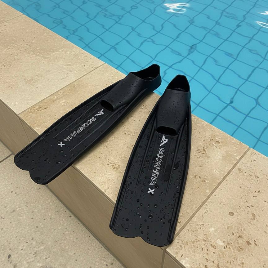 Ласты для подводной охоты и фридайвинга Scorpena X3 со сменной лопастью. Увеличенная длина лопасти 73 см и профессиональная галоша с утолщенной подошвой обеспечивают эффективную передачу импульса мышечного усилия. Галоша расширена под русскую ногу и позволяет использовать толстый носок. Мягкий верх предотвращает натирание. Система «усы» для легкой замены лопасти на фибергласс, карбоновый сэндвич или чистый карбон. Стандартная пластиковая лопасть шире других моделей. Жесткость: Soft (мягкая). Вес: ~1320 г.
