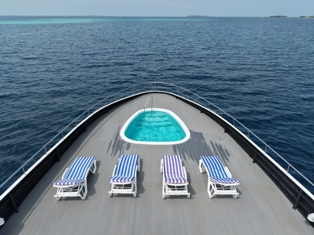 - Проживание на яхте Ritrella – самой большой круизной яхте на Мальдивах, длиной 58 метров